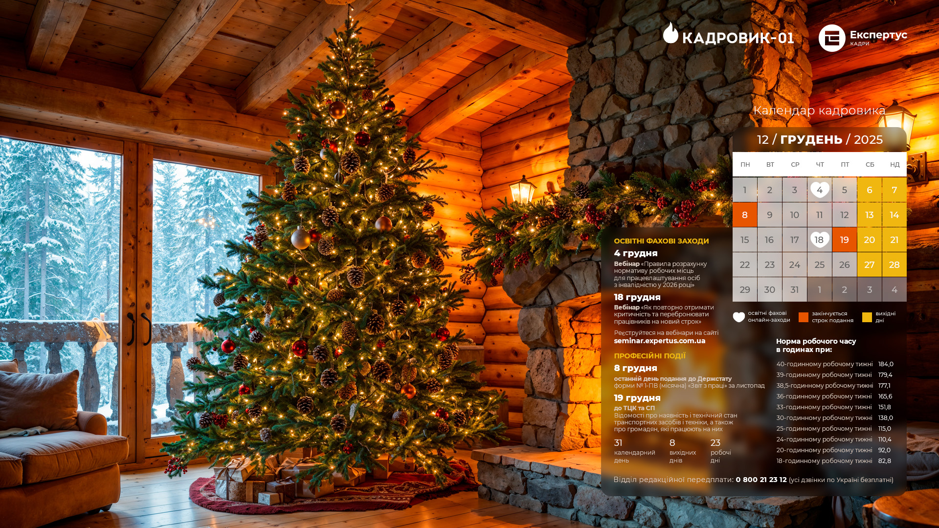 У грудні 2025 року українців чекає стандартна кількість робочих і вихідних днів — додаткових святкових вихідних не передбачено. Робочий місяць триватиме 23 дні, а вихідних буде 8.