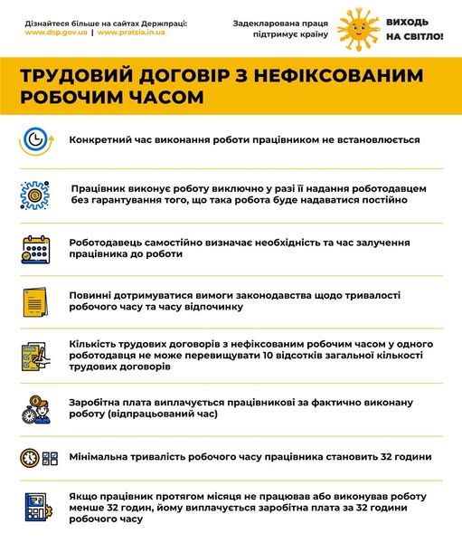 Важливо також пам'ятати, що норми законодавства щодо тривалості робочого часу та відпочинку так само мають дотримуватися у разі укладення трудового договору з нефіксованим робочим часом.