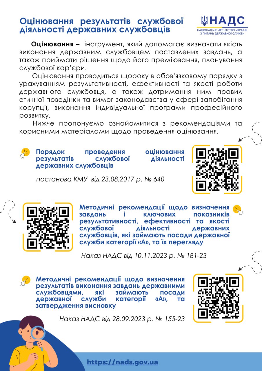 У Національному агентстві з питань державної служби надали перелік рекомендацій та корисних матеріалів щодо проведення оцінювання: